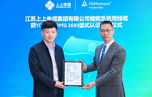 作为独立第三方检测认证机构,TÜV莱茵在储能领域深耕多年,致力于推动行业安全与质量标准的建立和完善。上上电缆集团在新能源电缆研发方面具备扎实的技术积累和生产能力,此次获得认证,体现了其产品在性能和品质方面的稳定表现,也为储能系统的可靠运行提供了有力保障。