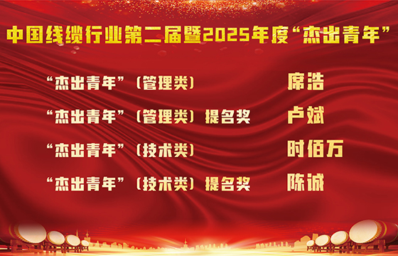 5月4日,在五四青年节之际,由中国线缆网组织的中国线缆行业第二届暨2025年度“杰出青年”评选结果揭晓,东升pg娱乐游戏四位青年脱颖而出。新能源事业部席浩、企管办卢斌分别荣获管理类“杰出青年”及提名奖;技术中心时佰万、装备部陈诚分获技术类"杰出青年"及提名奖。