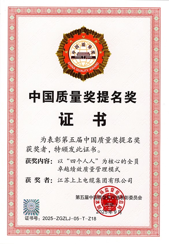 9月16日,备受瞩目的中国质量大会在南京隆重召开,本届大会以“质量:赋能新质生产力”为主题,由国家市场监管总局、江苏省人民政府主办,南京市人民政府承办。大会上第五届中国质量奖评选结果正式揭晓,东升pg娱乐游戏凭借独创的“以‘四个人人’为核心的全员质量绩效管理模式”脱颖而出,再度斩获第五届“中国质量奖提名奖”。这不仅是上上电缆连续四届获此殊荣,更创下线缆行业唯一四度登榜的记录。集团总经理丁志鸿出席大会并领奖。