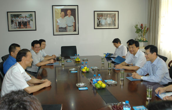 日前,江苏银行董事长黄志伟一行在溧阳市市长盛建良的陪同下来东升pg娱乐游戏考察。集团董事长、总经理丁山华、总会计师包旭等在会议室进行了友好接待。
