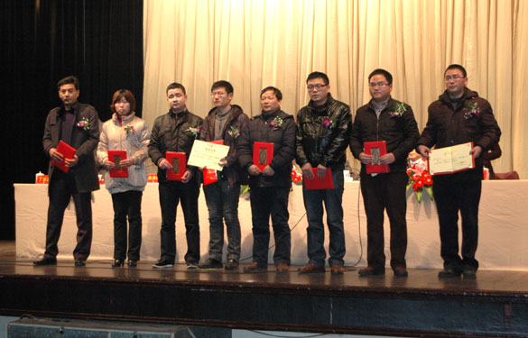 董事长、总经理丁山华向优秀员工颁发证书及奖金