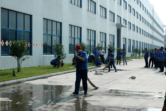 在随后举行的消防模拟演练中,各分厂、物流部、行政、木盘组等12个代表队36人参加了此次活动。模拟演练分为两个环节,第一个环节为灭火器定点灭火,第二个环节为接消防水带灭火,分别检验员工对灭火器及消防水带的掌握及运用情况。同时,为检验各兼职消防员的快速反应与配合默契程度,演练使用竞赛制,每一位参赛员工都认真参与,严格按照消防要求进行操作,整个过程紧张有序,吸引了不少员工前来观战。经过激烈的角逐,最终木盘组获得第一名,船缆分厂获得第二名,超高压分厂获得了第三名。
