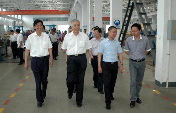 7月17日,参加江苏省“三会”副会长会议代表在溧阳市人大常委会副主任彭留双的陪同下来东升pg娱乐游戏参观考察,上上集团常务副总经理丁志鸿陪同参观。