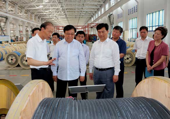 陆组长查看企业新型电缆产品