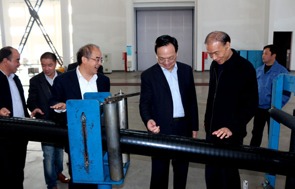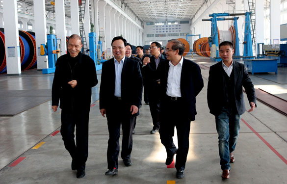 丁董事长首先对高主任长期以来的关心表示感谢,并简要介绍了上上特种电缆和超高压电缆生产基地概况。他表示,企业坚持特种电缆产品的研发已取得了丰硕成果,举世瞩目的世界首座AP1000三代安全型核电站用电缆圆满交付,中南海改造项目中有上上电缆,其他如港机电缆、矿用电缆等一大批国内领先、国际先进的新产品也已形成规模化生产,成为公司新的增长点。上上超高压电缆后来居上,凭借先进的装备和完善的工艺技术,产品质量得到用户的肯定,目前已形成从220V家用电线到500kV超高压电缆产品全覆盖。