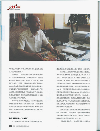 丁山华:我的梦只是中国梦的小篇章。我希望我能做个好家长,让我的员工多一份依靠,少一份忧虑。我希望上上能成为百年老店,行业状元。成为中国电缆行业的坚强脊梁。未来,用户和同行都能公认,上上是最值得信赖的选择。