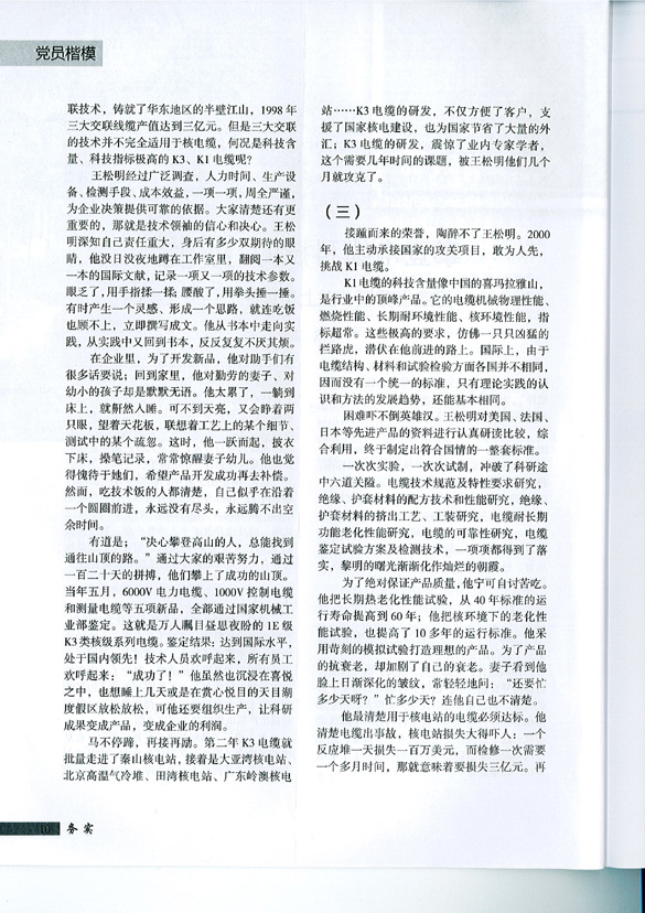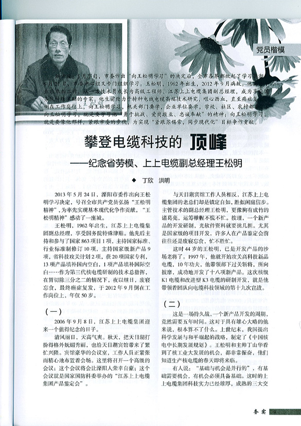 1998年,“上上”K3类电缆进入市场;2006年,完成了K1类壳内核电缆的研发。